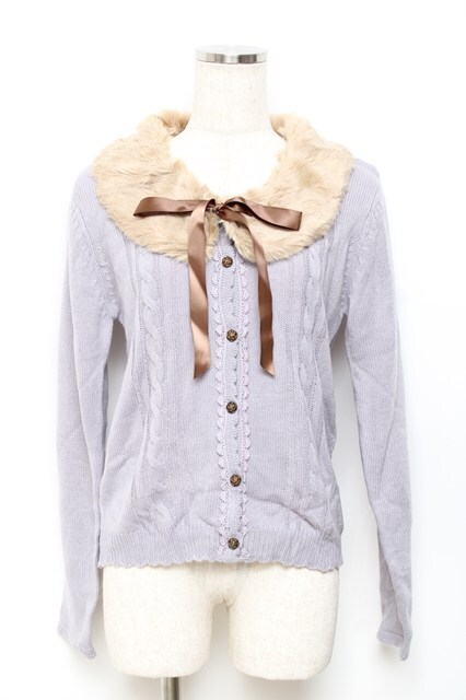 axes femme / ファーティペット付カーデ M ラベンダー Y-25-10-18-107-AX-TO-SZ-ZY