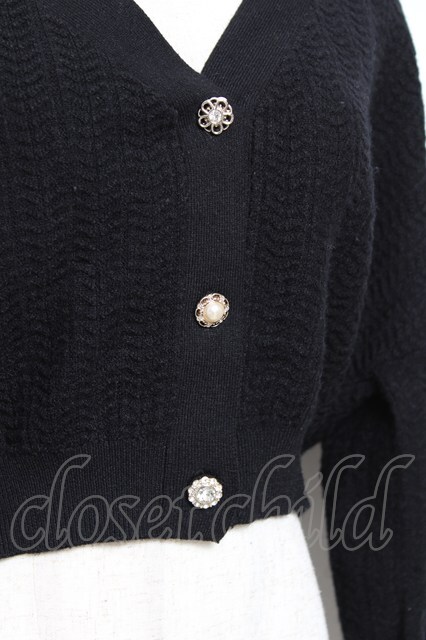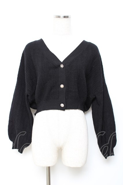 axes femme / バルーン袖ショート丈ニットカーディガン M 黒 Y-25-10-18-119-AX-TO-SZ-ZY