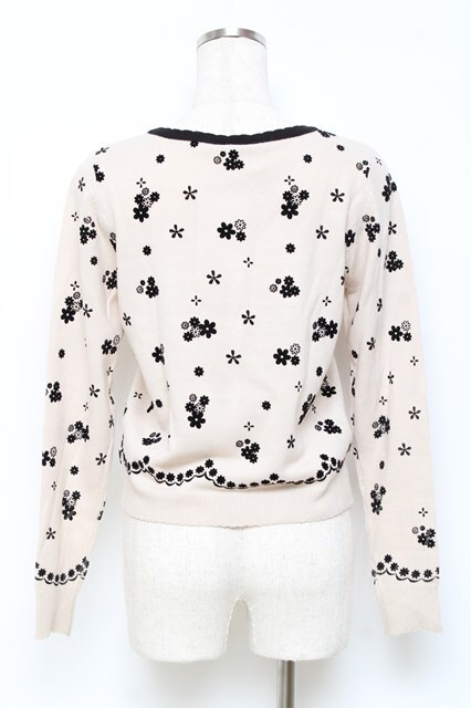 Secret Honey / お花フロッキーカーディガン 2 オフ×黒 Y-25-10-18-124-CA-TO-SZ-ZY