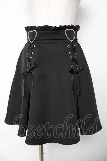 DearMyLove / ハートバックルレースアップスカート M 黒 Y-25-10-18-194-EL-SK-SZ-ZY