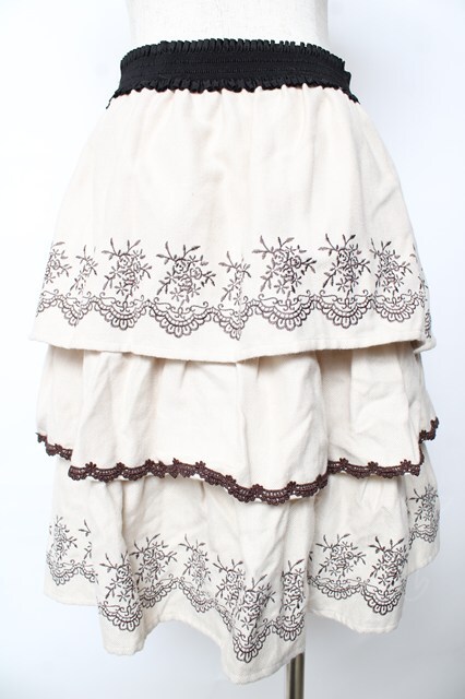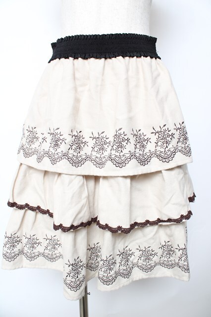 axes femme / 刺繍入ティアードスカート M 生成り Y-25-10-18-223-AX-SK-SZ-ZY