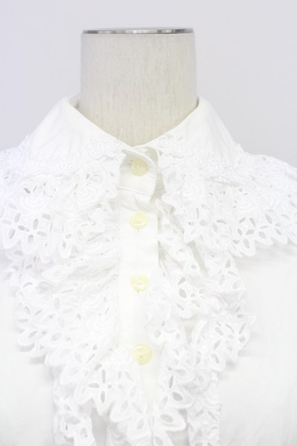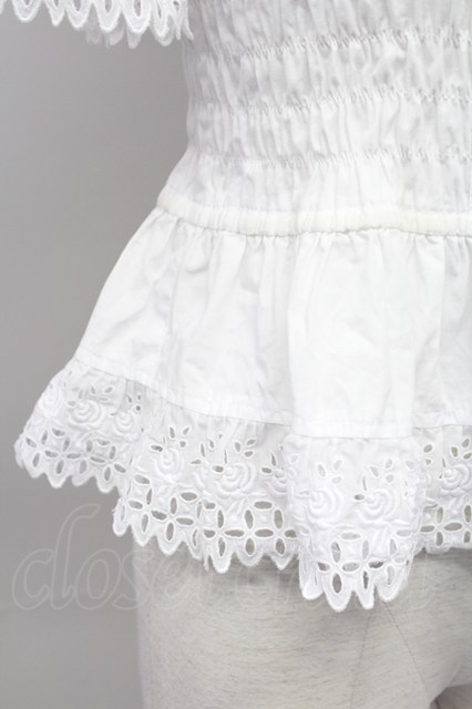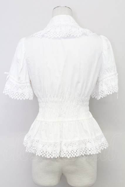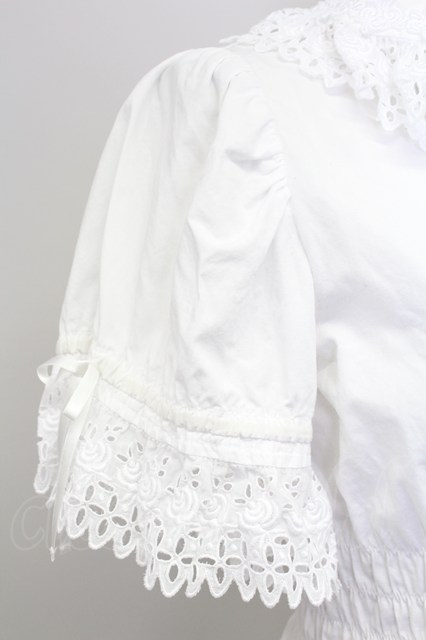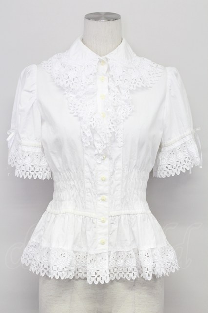 Innocent World / ローズレースシャーリング半袖ブラウス 白 T-25-10-17-004-IW-BL-SA-ZT