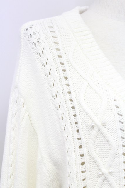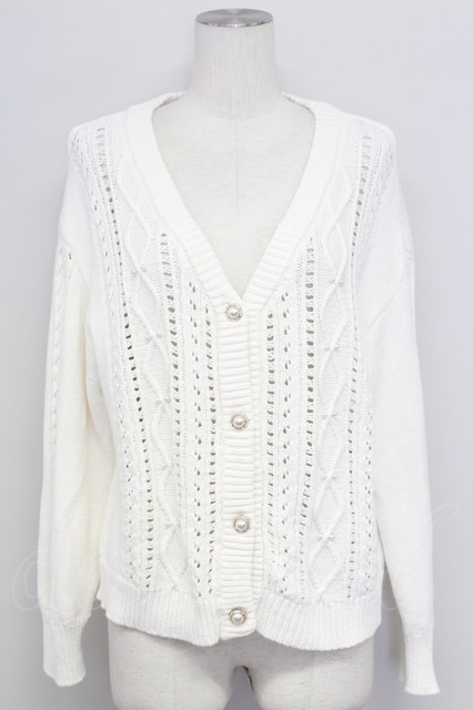 axes femme / 透かし柄ニットカーディガン ホワイト T-25-10-17-005-AX-TO-SA-ZT