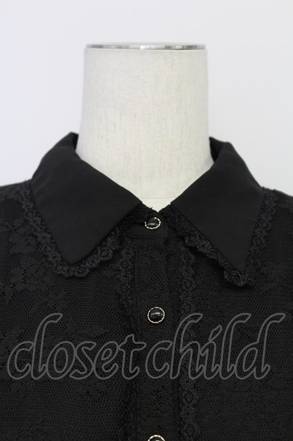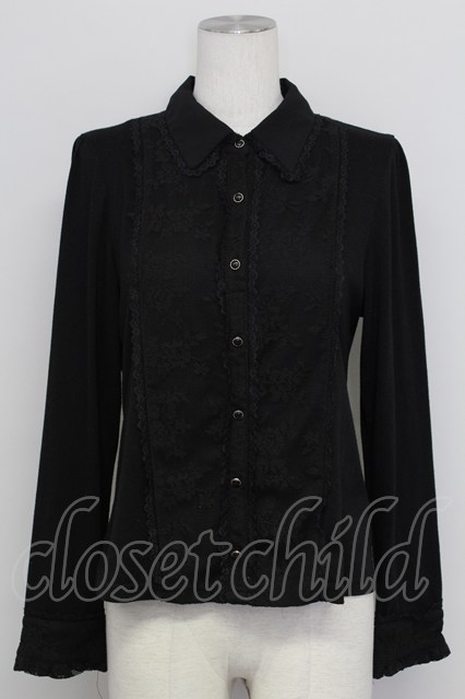 axes femme / 前レースブラウス風カットプルオーバー クロ T-25-10-17-010-AX-TO-SA-ZT