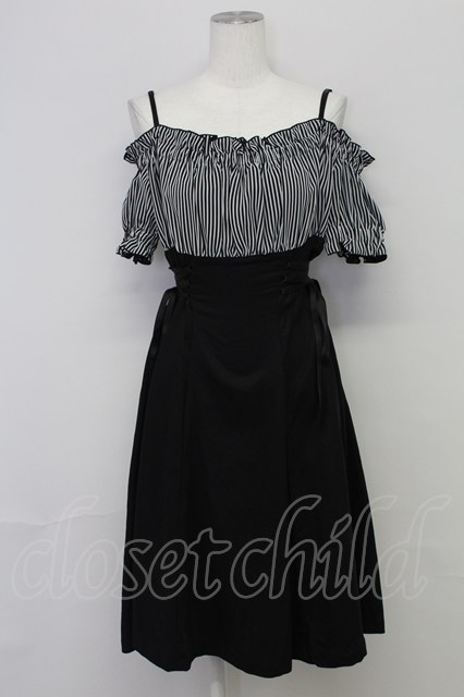 BPN / ストライプ切り替えオフショルダーワンピース 黒X白 T-25-10-17-017-GO-OP-SA-ZT