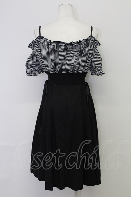 BPN / ストライプ切り替えオフショルダーワンピース 黒X白 T-25-10-17-017-GO-OP-SA-ZT [2100060000037566-T-25-10-17-017-GO-OP-SA-ZT]