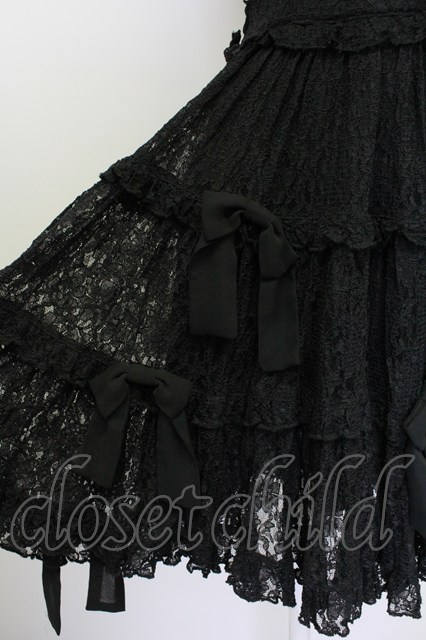 metamorphose / 総レースパールリボンジャンパースカート 黒 T-25-10-17-021-ME-OP-SA-ZT
