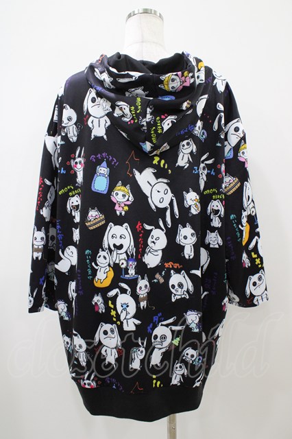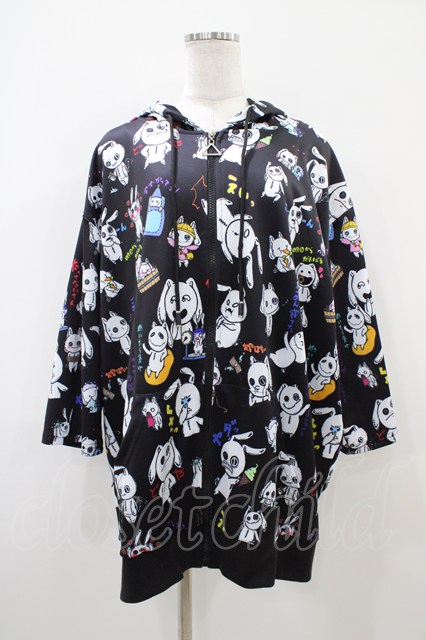 NieR Clothing / 総柄ZIP半袖パーカー 黒 H-25-10-22-056-PU-TO-KB-ZH