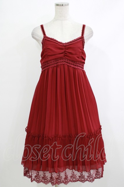 axes femme / プリーツキャミワンピース M ワイン H-25-10-21-1025-AX-OP-NS-ZH