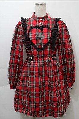 Jamie エーエヌケー / クロスチェックワンピース 赤 S-25-10-17-050-LO-OP-HR-ZS