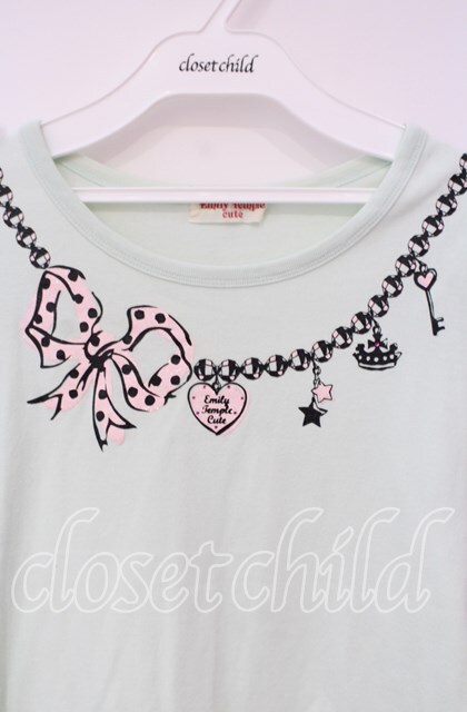 Emily Temple cute / ネックレスプリントTシャツ ミント O-25-10-18-036-ET-TS-IG-OS