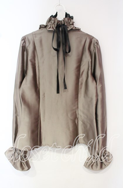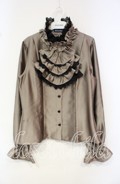Moi-meme-Moitie / ストライプジャボ付きブラウス モカブラウン O-25-10-18-048-MO-BL-OW-OS