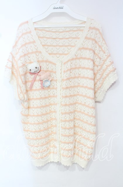 PINK HOUSE / さざ波とねこミニブローチ付きニットカーディガン キナリ O-25-10-18-082-LO-TO-OW-OS