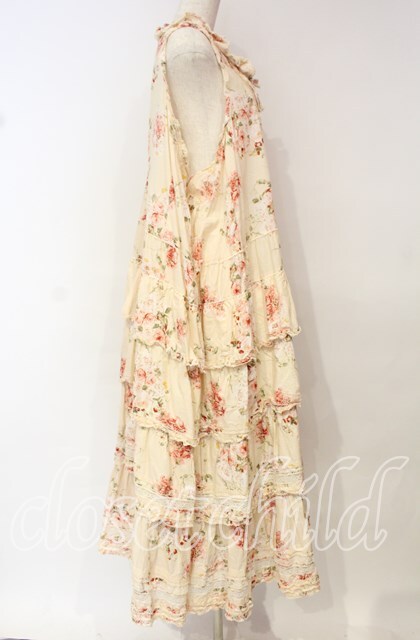 PINK HOUSE / ローズブーケプリントフリル段々ワンピース【お直しあり】 アイボリー O-25-10-18-073-LO-OP-IG-OS