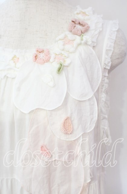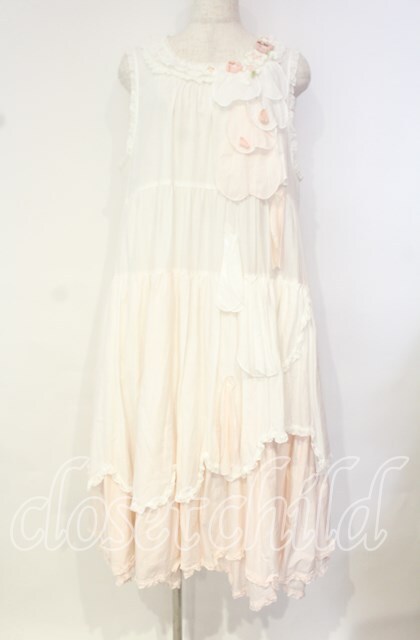 PINK HOUSE / 桜ひらり舞い散るフリルワンピース シロ×ピンク O-25-10-18-063-LO-OP-OW-OS