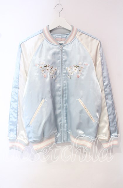 PINK HOUSE / 桜Teddy刺繍使いサテンブルゾン サックス O-25-10-18-080-LO-JA-OW-OS [2100080000061624-O-25-10-18-080-LO-JA-OW-OS]