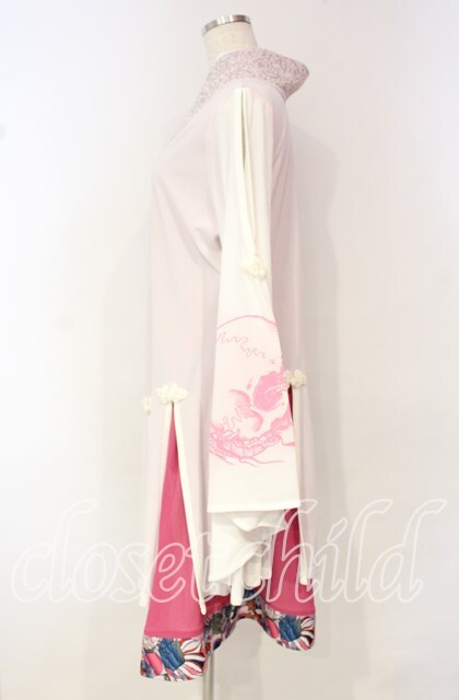 Qutie Frash / 肩空き着物カーディガン ピンク×シロ O-25-10-18-092-QU-TO-OW-OS [2100080000061667-O-25-10-18-092-QU-TO-OW-OS]