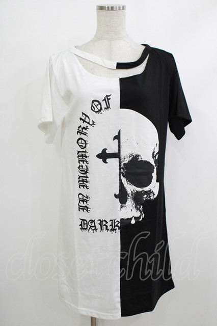 HELL CAT PUNKS / バイカラーロングTシャツSKULL F 黒×白 H-25-10-22-1049-PU-TO-KB-ZH [2100030000062989-H-25-10-22-1049-PU-TO-KB-ZH]