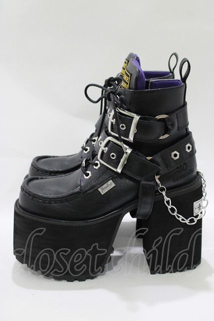 YOSUKE / 厚底レースアップブーツ 24.5cm 黒 H-25-10-22-1081-PU-SH-KB-ZH [2100030000075196-H-25-10-22-1081-PU-SH-KB-ZH]