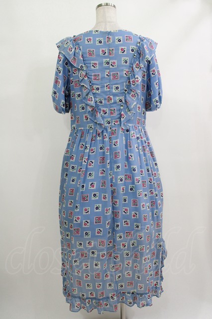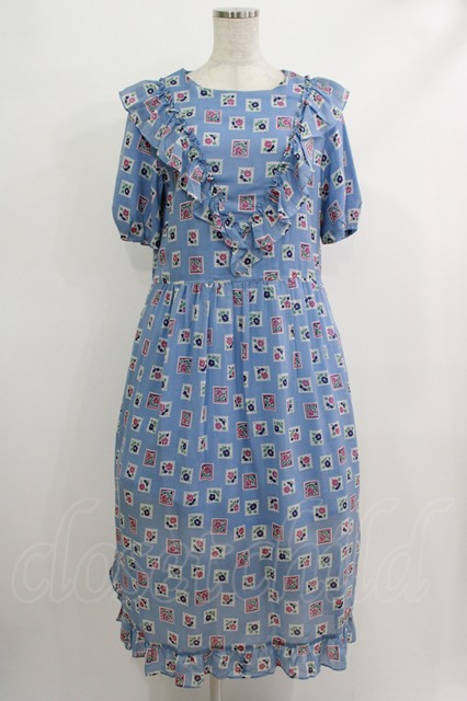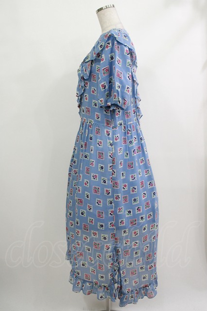 Jane Marple Dans Le Salon / Flower Stamp Empireワンピース M サックス H-25-10-22-1009-JM-OP-KB-ZH