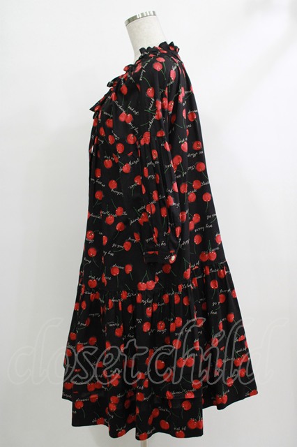 Jane Marple / Skipping cherriesチュニックドレス M 黒 H-25-10-22-1002-JM-OP-KB-ZH [2100000002184173-H-25-10-22-1002-JM-OP-KB-ZH]