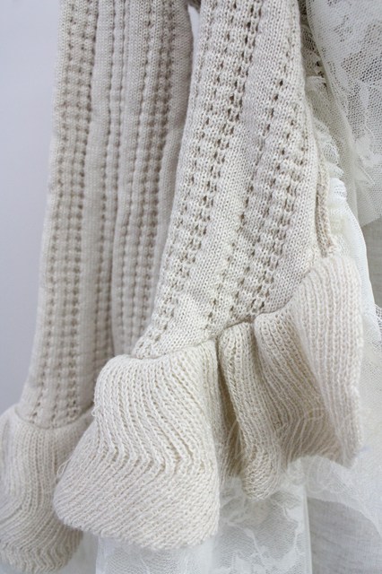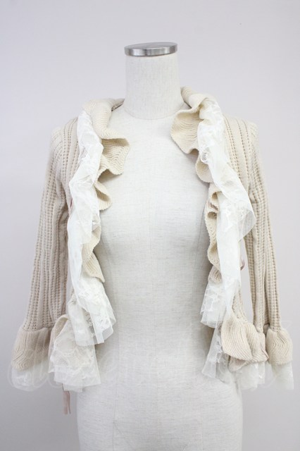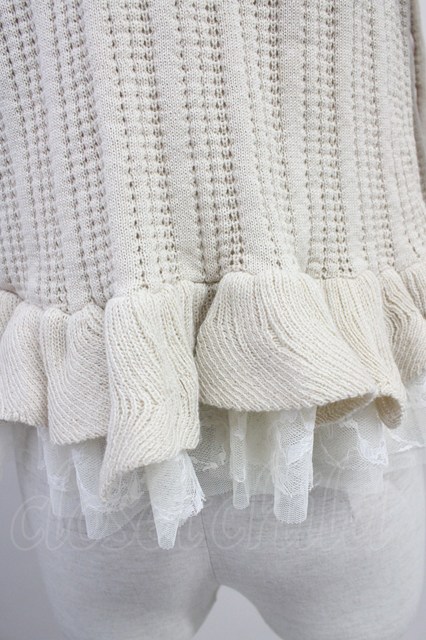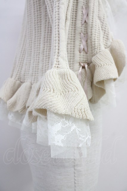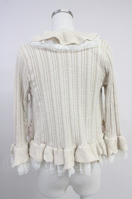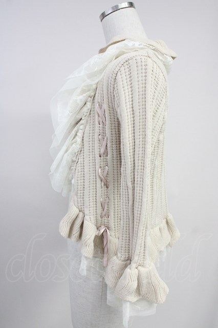 axes femme / フリル襟編み上げニットボレロ M アイボリーX白 T-25-10-19-007-AX-TO-SA-ZT