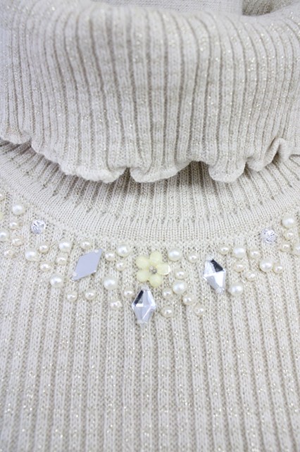 axes femme / 袖レースラメニットプルオーバー アイボリー T-25-10-19-008-AX-TO-SA-ZT