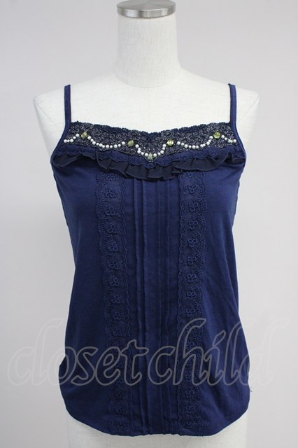 axes femme / ストーンパール配色キャミソール ネイビー T-25-10-19-016-AX-TO-SA-ZT [2100060000040896-T-25-10-19-016-AX-TO-SA-ZT]