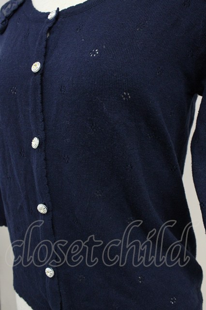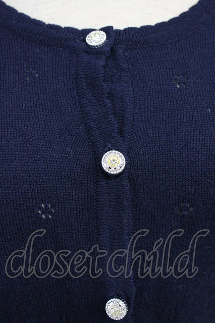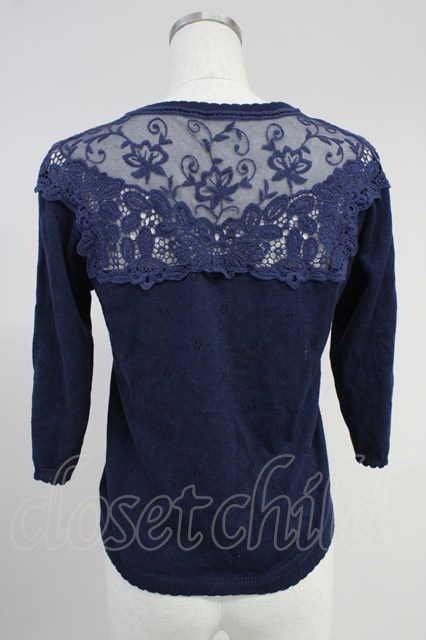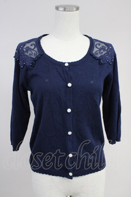 axes femme / 肩レース透かしニットカーディガン ネイビー T-25-10-19-019-AX-TO-SA-ZT