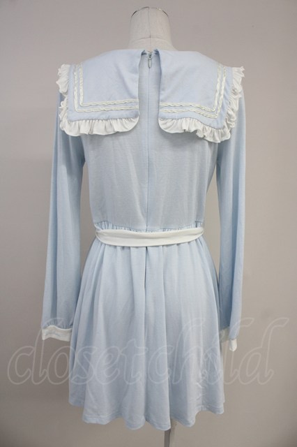 E hyphen world gallery / セーラーフリル長袖ワンピース サックスX白 T-25-10-19-031-LO-OP-SA-ZT