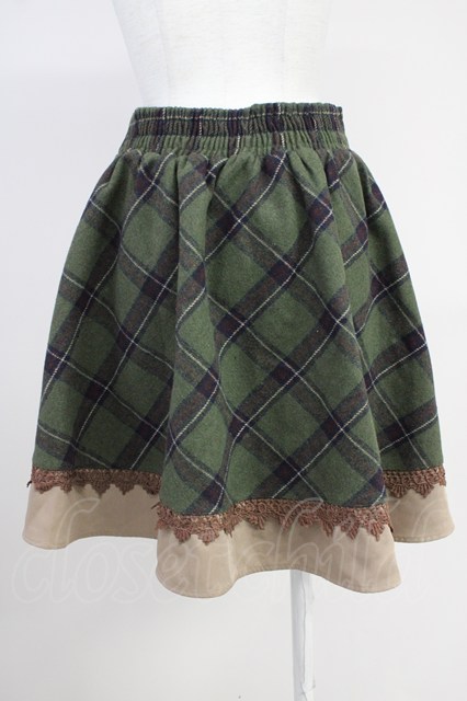 axes femme POETIQUE / ナナメチェックスカート グリーンXブラウン T-25-10-19-043-AX-SK-SA-ZT