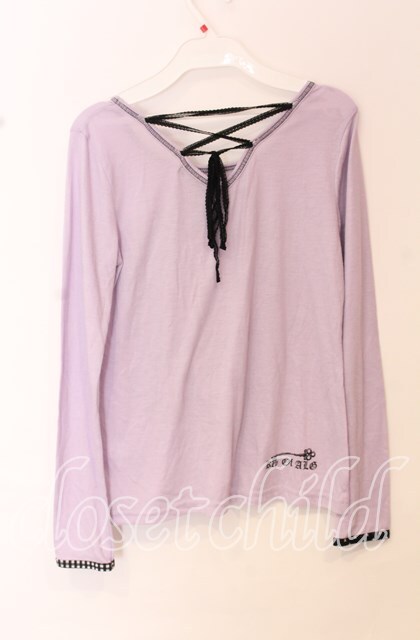 ALGONQUINS / アリスラビットフロッキーカットソー ブラック×ラベンダー O-25-10-19-037-AL-TO-IG-OS