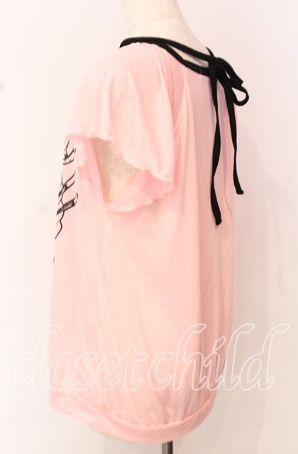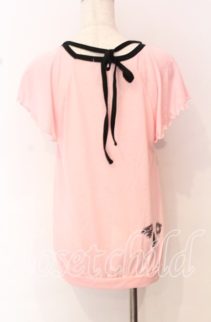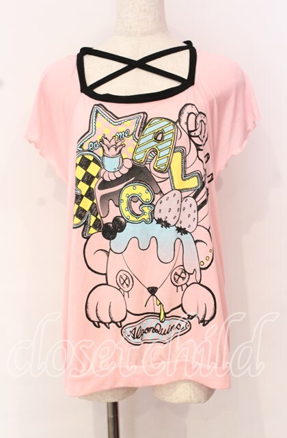 ALGONQUINS / ベアープリントクロスホルターTシャツ ピンク×ブラック O-25-10-19-025-AL-TO-IG-OS