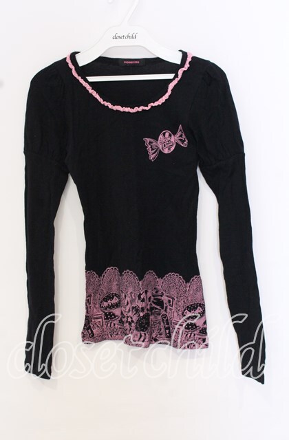 ALGONQUINS / キャンディプリントカットソー ブラック×ピンク O-25-10-19-038-AL-TO-IG-OS