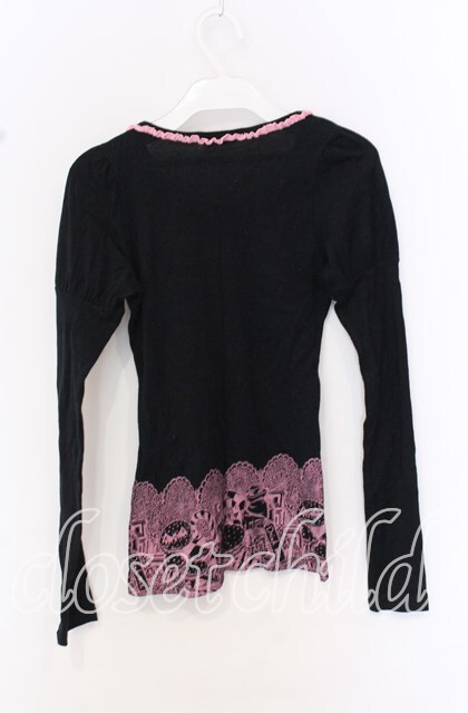 ALGONQUINS / キャンディプリントカットソー ブラック×ピンク O-25-10-19-038-AL-TO-IG-OS [2100080000061799-O-25-10-19-038-AL-TO-IG-OS]
