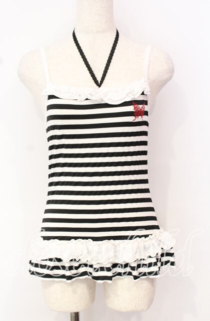 ALGONQUINS / ボーダーホルターキャミソール ホワイト×ブラック O-25-10-19-046-AL-TO-IG-OS