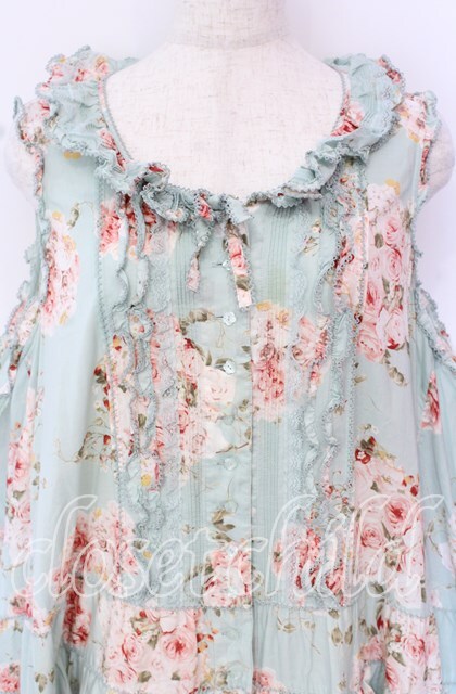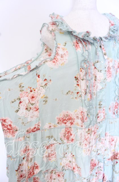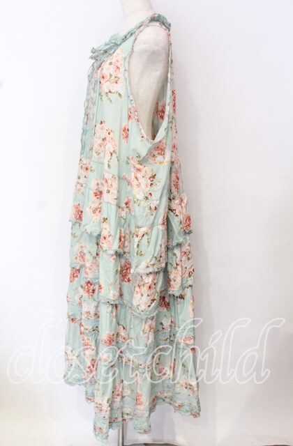 PINK HOUSE / ローズブーケプリントフリル段々ワンピース【お直しあり】 ミント O-25-10-19-092-LO-OP-IG-OS
