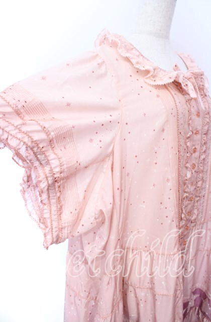 PINK HOUSE / Starry Sky プリントパッチワークワンピース【お直しあり】 生地付け足し(通常よりも大きなサイズ) ピンク O-25-10-19-085-LO-OP-IG-OS