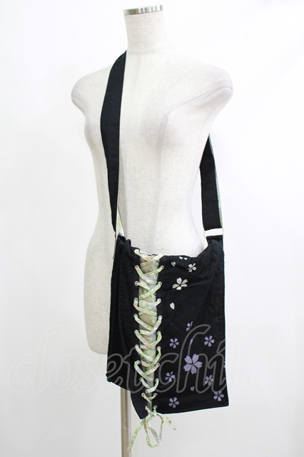 kikou / 和柄編上ショルダーバッグ 黒 H-25-10-23-1060-GO-BG-KB-ZH