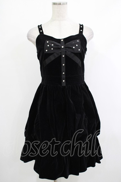 MILK / ビジューリボン別珍ワンピース ブラック H-25-10-23-1021-ML-OP-KB-ZH [2100030000075994-H-25-10-23-1021-ML-OP-KB-ZH]