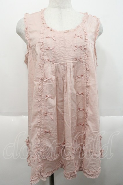 PINK HOUSE / ミニリボン&スカラップフリルノースリーブチュニック ピンク I-25-10-18-031-LO-TO-SA-ZI