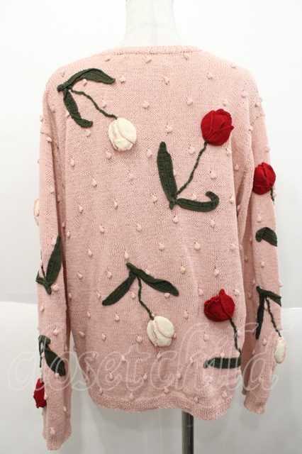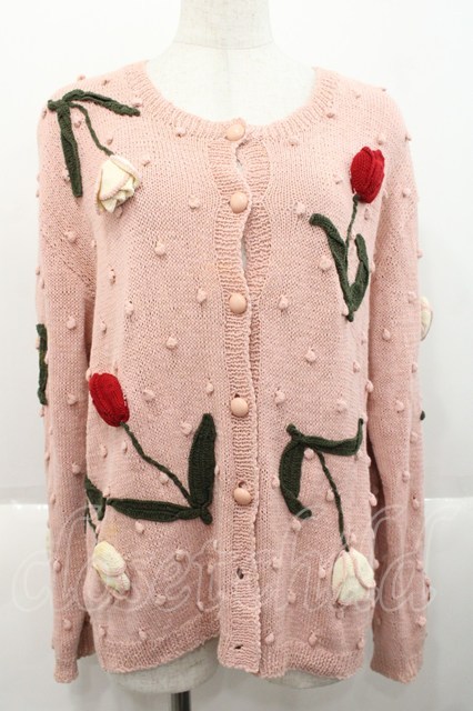 PINK HOUSE / チューリップモチーフ付きカーディガン ピンク I-25-10-18-027-LO-TO-SA-ZI