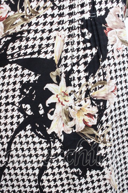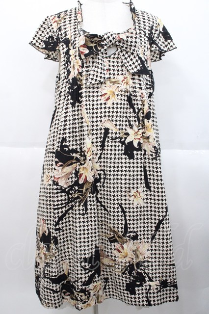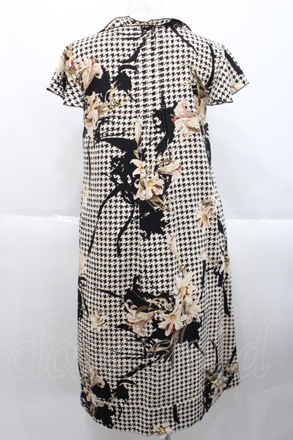 INGEBORG / 百合柄千鳥ノースリーブワンピース 黒Xアイボリー I-25-10-18-075-LO-OP-SA-ZI