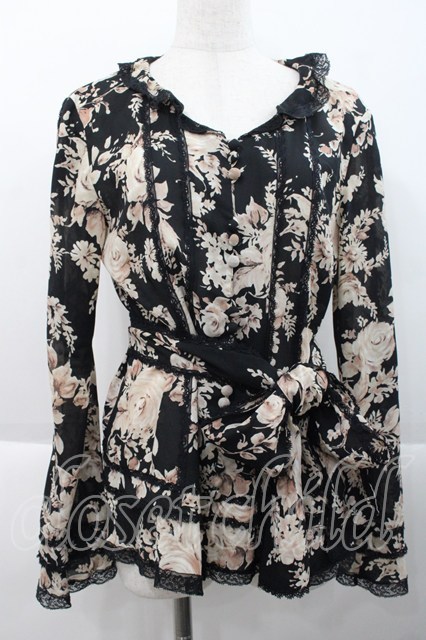 INGEBORG / ローズ柄ブラウス 黒 I-25-10-18-043-LO-BL-SA-ZI [2100060000035814-I-25-10-18-043-LO-BL-SA-ZI]