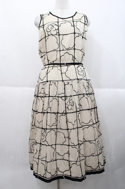 INGEBORG / カメリア風枠柄ノースリーブワンピース アイボリーX黒 I-25-10-18-060-LO-OP-SA-ZI [2100060000035817-I-25-10-18-060-LO-OP-SA-ZI]