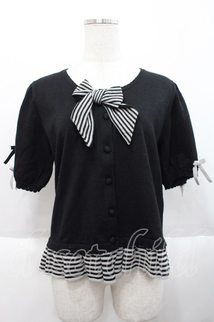 PINK HOUSE / ストライプリボン付きカーディガン 黒 I-25-10-18-024-LO-TO-SA-ZI [2100060000040433-I-25-10-18-024-LO-TO-SA-ZI]