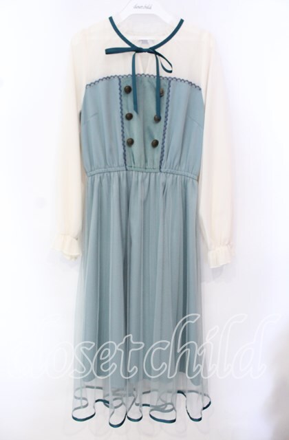 axes femme POETIQUE / 連ボタンデザインチュールワンピース M グリーン O-25-10-20-022-AX-OP-OW-OS [2100080000061812-O-25-10-20-022-AX-OP-OW-OS]