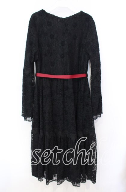 axes femme / 花柄総レースガウンワンピース M クロ O-25-10-20-043-AX-OP-OW-OS