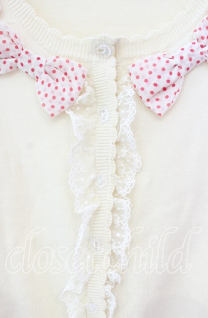 Emily Temple cute / 水玉リボン半袖カーディガン アイボリー O-25-10-20-071-ET-TO-IG-OS [2100080000062027-O-25-10-20-071-ET-TO-IG-OS]