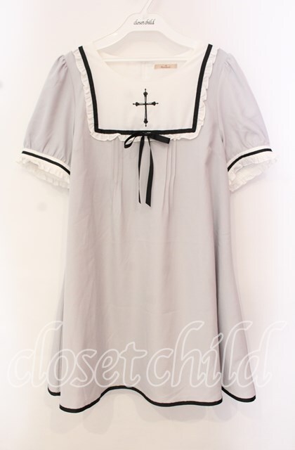 Amavel / クロス刺繍入りスクエアヨーク切替ワンピース F グレー O-25-10-20-015-CA-OP-OW-OS